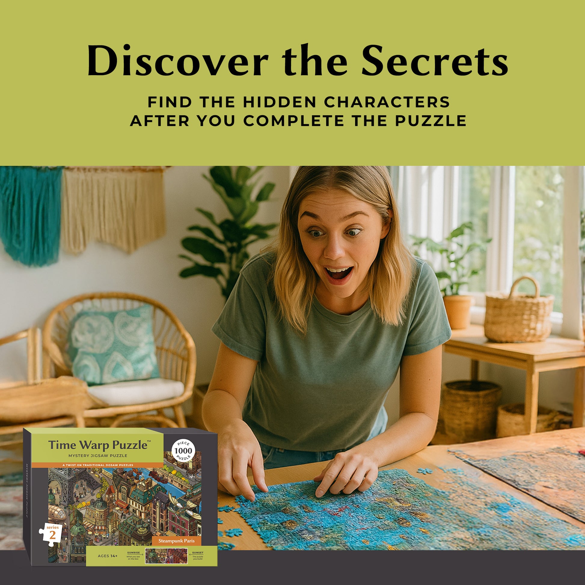 1000 Piece Jigsaw Puzzle – Box Shows Sunrise, Puzzle Reveals Sunset | Time Warp Puzzle Series 2: Steampunk Paris