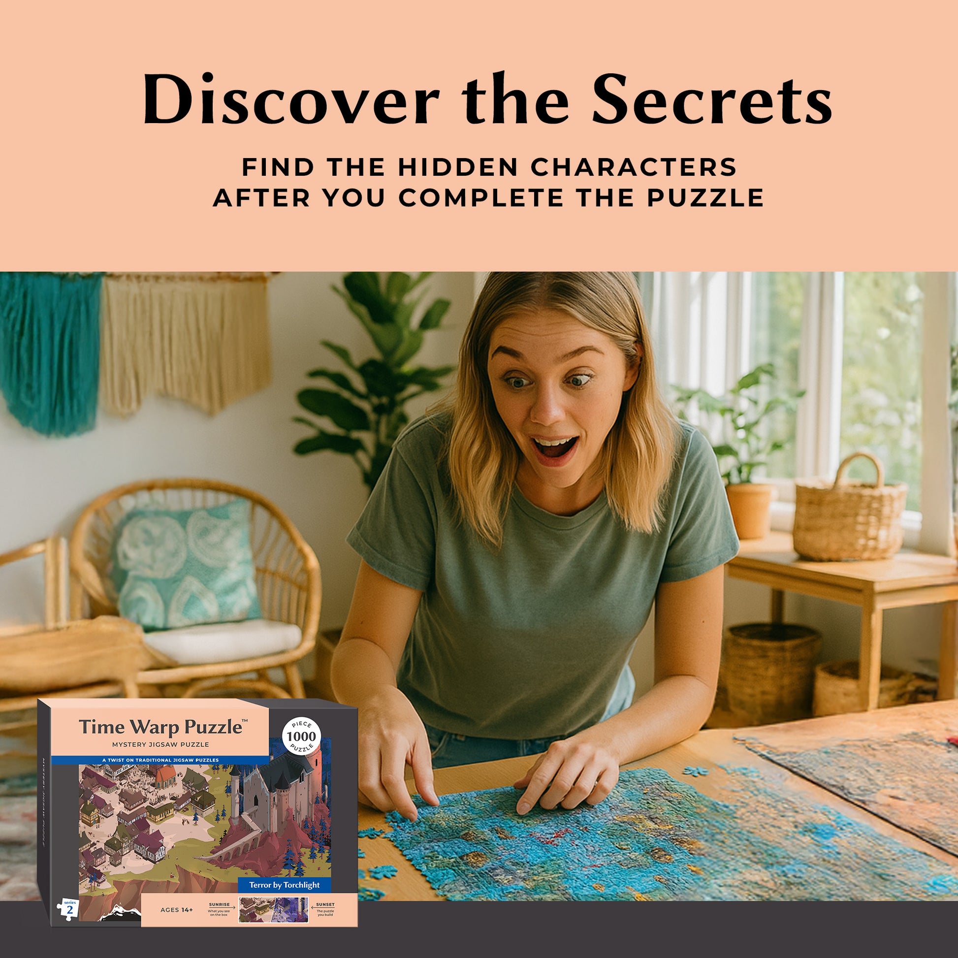 Experience the twist of a Time Warp Puzzle: the box shows a bright sunrise scene, but as you solve, the puzzle reveals the same scene at sunset. A unique challenge for ages 14+, perfect for avid puzzlers and gift giving.