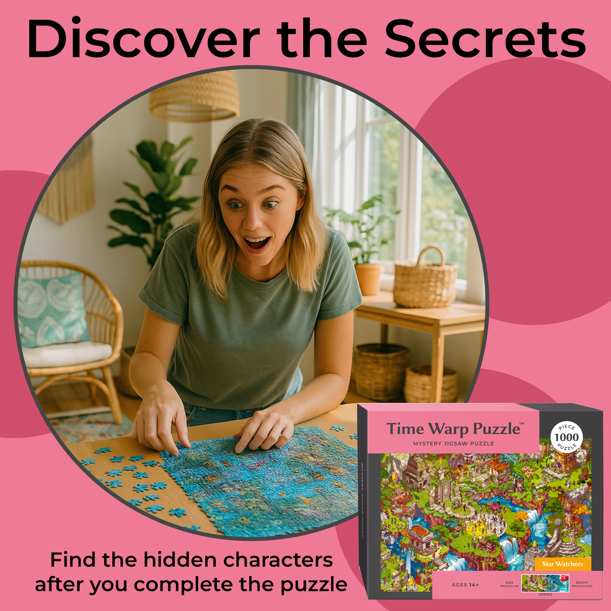 1000 Piece Jigsaw Puzzle – Box Shows Day, Puzzle Reveals Night | Time Warp Puzzle: Starwatchers